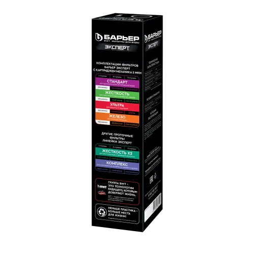 БАРЬЕР ЭКСПЕРТ Механика - картридж предварительной очистки. Удаляет механические загрязнения, песок, ржавчину и других взвеси. Тонкость фильтрации 5 мкм. Совместим с любым фильтром из семейства БАРЬЕР ЭКСПЕРТ, БАРЬЕР WaterFort OSMO - выполняет роль первой ступени.
