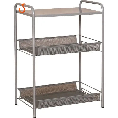 На корзинах поместятся кухонные принадлежности, овощи и фрукты, различная химия, косметику, цветы, игрушки и книги. Верхняя полочка - столик так-же выполнена из металла и делает изделие еще более функциональным. В комплекте дополнительный аксессуар - пластиковый крючок. Полка выпускается в популярных цветах - белый, серый, черный, графит и медный, поэтому подойдет практически под любой дизайн интерьера. Отличный подарок для тех, кто ценит порядок. Лёгкая сборка без инструментов. Изделие в картонной упаковке с удобной ручкой - легко донести от пункта выдачи до дома.
