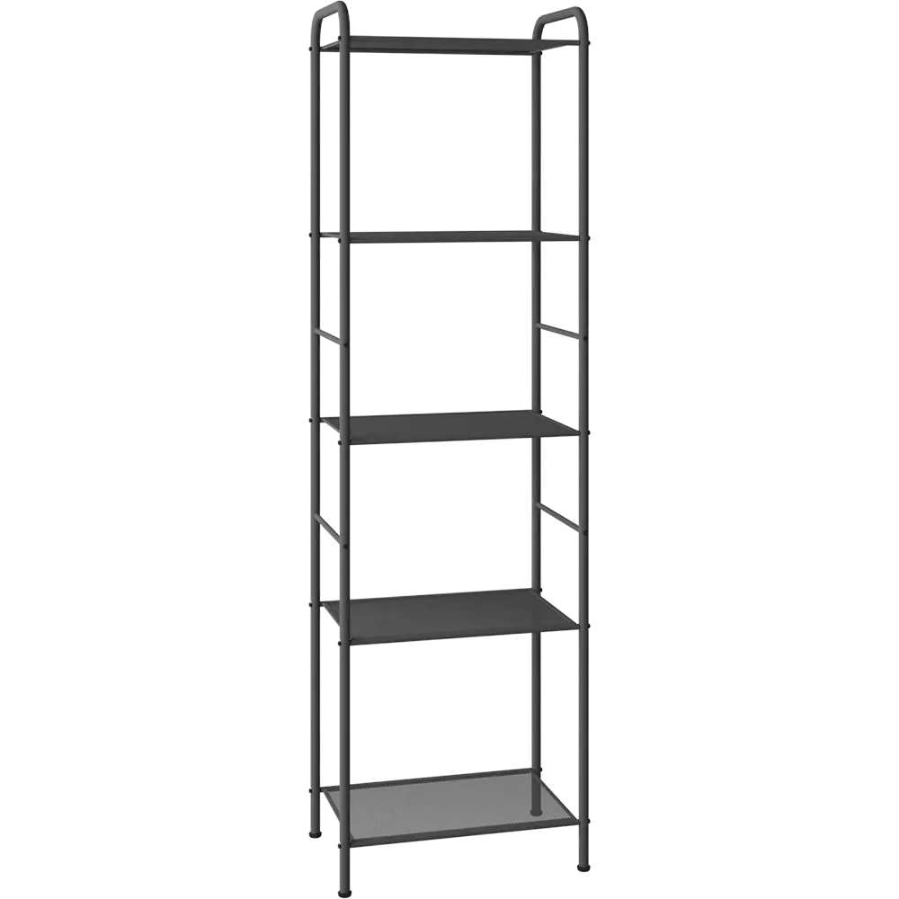 Система хранения имеет 5 металлических сетчатых полок, каждая из которых выдерживает нагрузку до 8 кг.