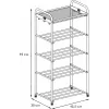 Универсальная этажерка содержит 4 яруса, на которых с лёгкостью помещается до 12 пар обуви. Разрешенная нагрузка на одну полку - 8 кг. Корзина в мелкую сетку предназначена для хранения таких вещей, как ключи, обувные аксессуары, сумки и. т.д. Крючки по бокам позволяют всегда иметь под рукой обувную ложечку, зонтик и другие необходимые предметы. Пластиковые заглушки на ножках защитят пол от царапин.