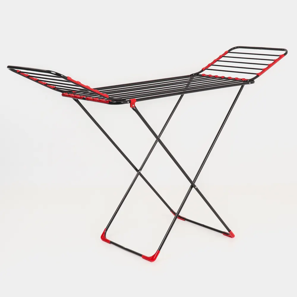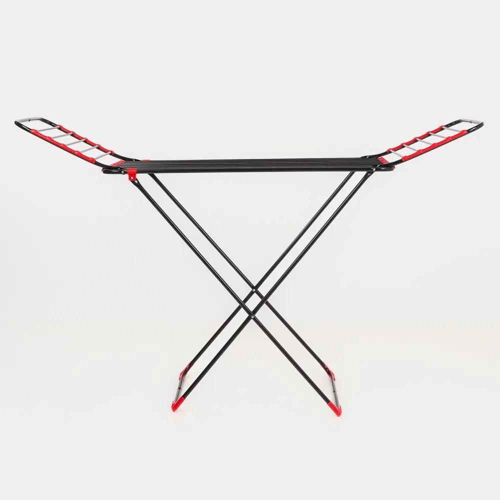 Rasflashadigan yon qanotli metall quritgich kiyimlarni tartibli osish va tezroq quritish imkonini beradi. Mustahkam karkas va ishonchli biriktirish tugunlari barqaror turishni ta’minlaydi. Ishlatib bo‘lgach, buklanadigan kir quritgich tez yig‘iladi va juda kam joy egallaydi.